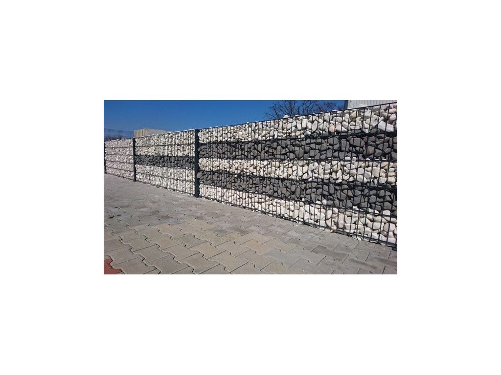 Sekcia gabiónového plota, dĺžka 250cm, výška 143 cm. Sekcia obsahuje 2x panel 2D zodpovedajúcej výšky, 2x stĺpik a zodpovedajúci počet dištančných tiahel. Antracitová šedá.