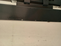 Bránka je mierne odretá v na nosnom stĺpiku na úrovni spodného pántu a na dorazovom stĺpiku na úrovni zámku. Výplň je mierne prehnutá.