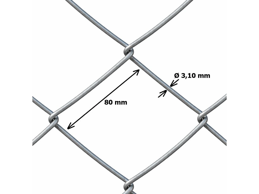 Oborové pletivo, veľkosť oka 80×80 mm, výška 250 cm (celková výška je prispôsobená veľkosti oka), hrúbka drôtu 3,10 mm. Pletivo je vyrobené z oceľového pozinkovaného drôtu.