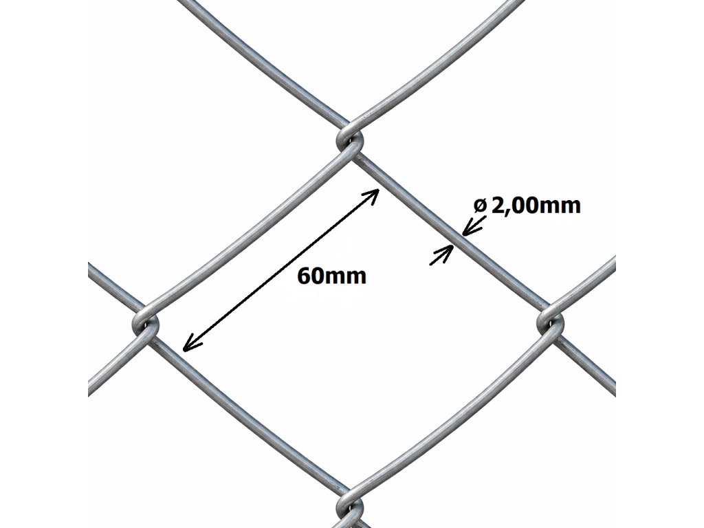 Klasické splietané štvorhranné pletivo, veľkosť oka 60x60 mm, výška 200 cm, hrúbka drôtu 2,0 mm. Pletivo je vyrobené z pozinkovaného drôtu.