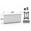 Šírka panelu 250 cm, výška panelu 123 cm, priemer drôtu 5 mm, vnútorná šírka oka 50 mm, 2 horizontálne prelisy. Pozinkovaný + poplastovaný, antracitová farba.