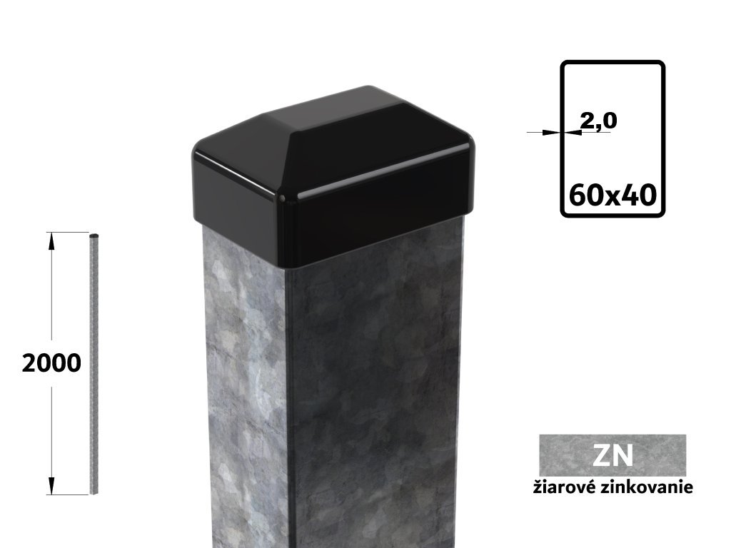 Plotový stĺpik 200 cm, 60×40×2,0 mm, žiarové pozinkovanie