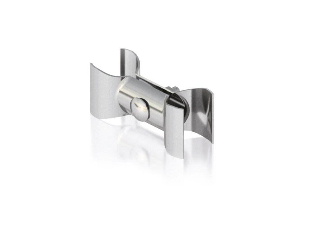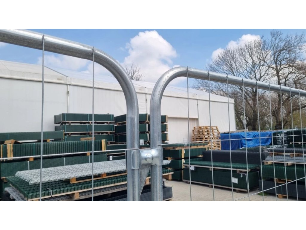 Spona na spájanie panelov mobilného oplotenia. Hrúbka materiálu 3,00 mm.