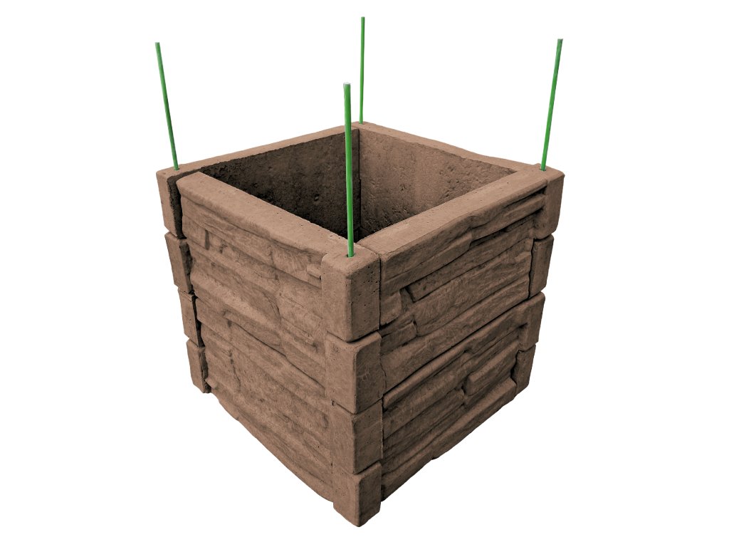 Vyvýšený záhon betónový 50x50 cm, výška 50 cm, vzor štiepaný kameň, hnedá