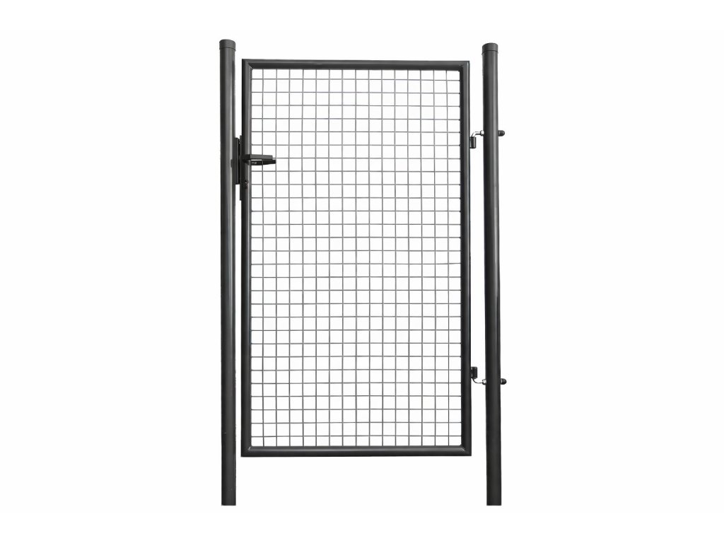 Rozmer bránky 100 x 180 cm, výplň zo zváranej siete s okom 50 x 50 mm, hrúbka drôtu 4 mm, povrchová úprava pozinkovanie a poplastovanie, farba antracitová šedá.